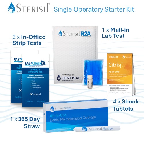 The exclusive, Sterisil® Starter Kit is waterline management made simple. Save by purchasing this all-in-one kit for each operatory in your practice to achieve optimal results.