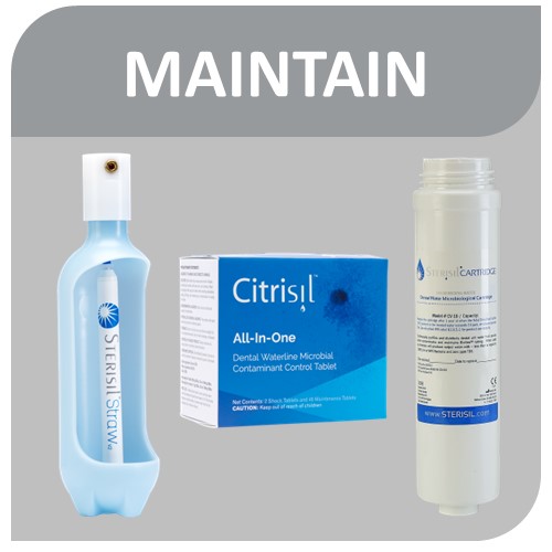 Our DUWL (Dental Unit Waterline) management products are grouped into three categories: SHOCK, TEST, and MAINTAIN.